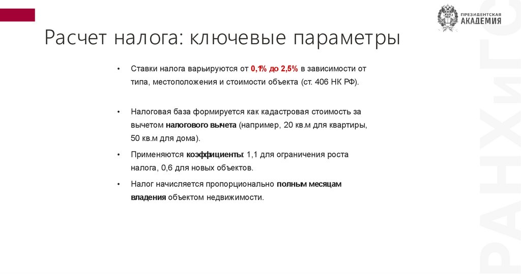 Расчет налога: ключевые параметрыСтавки налога варьируются от 0,1% до 2,5% в зависимости от
