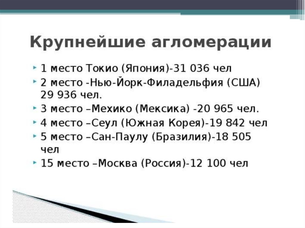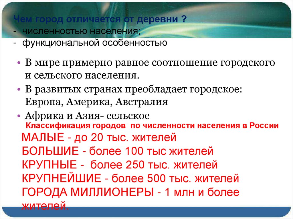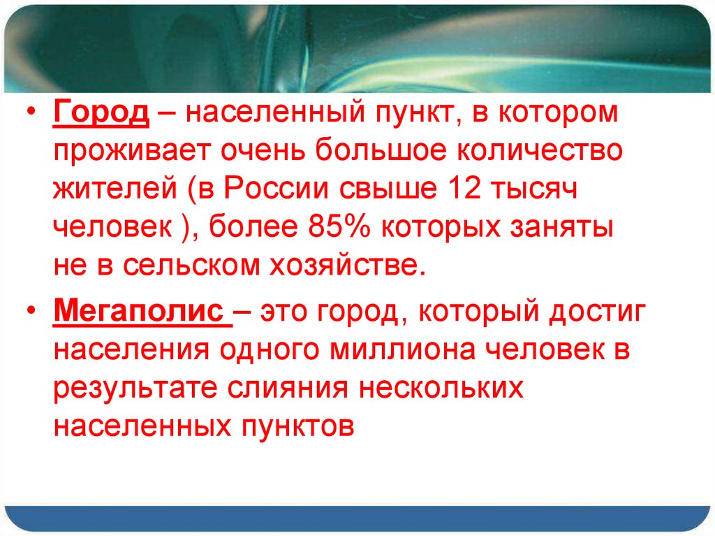 • Город – населенный пункт, в которомпроживает очень большое количество