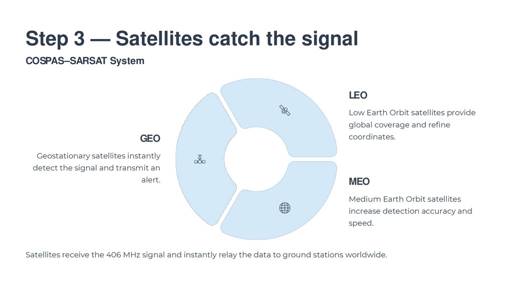 Step 3 — Satellites catch the signalCOSPAS–SARSAT System