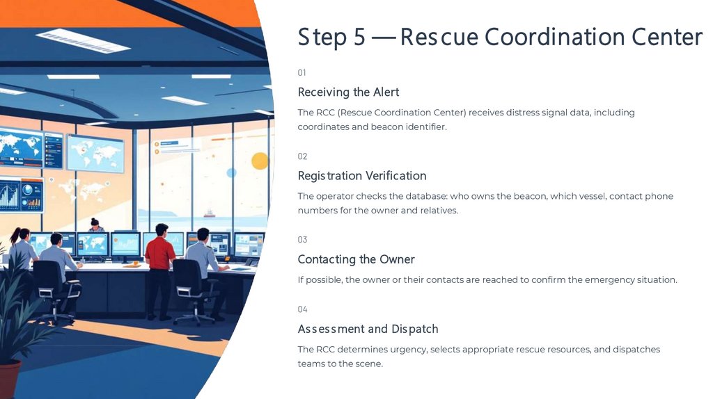 The RCC (Rescue Coordination Center) receives distress signal data, including