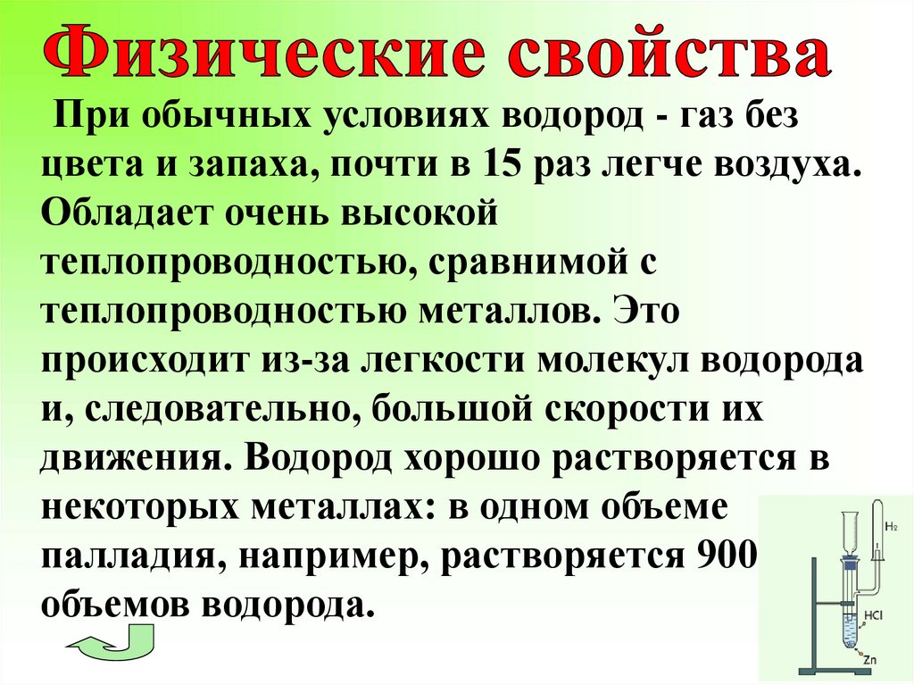 При обычных условиях водород - газ безцвета и запаха, почти в 15 раз легче воздуха.