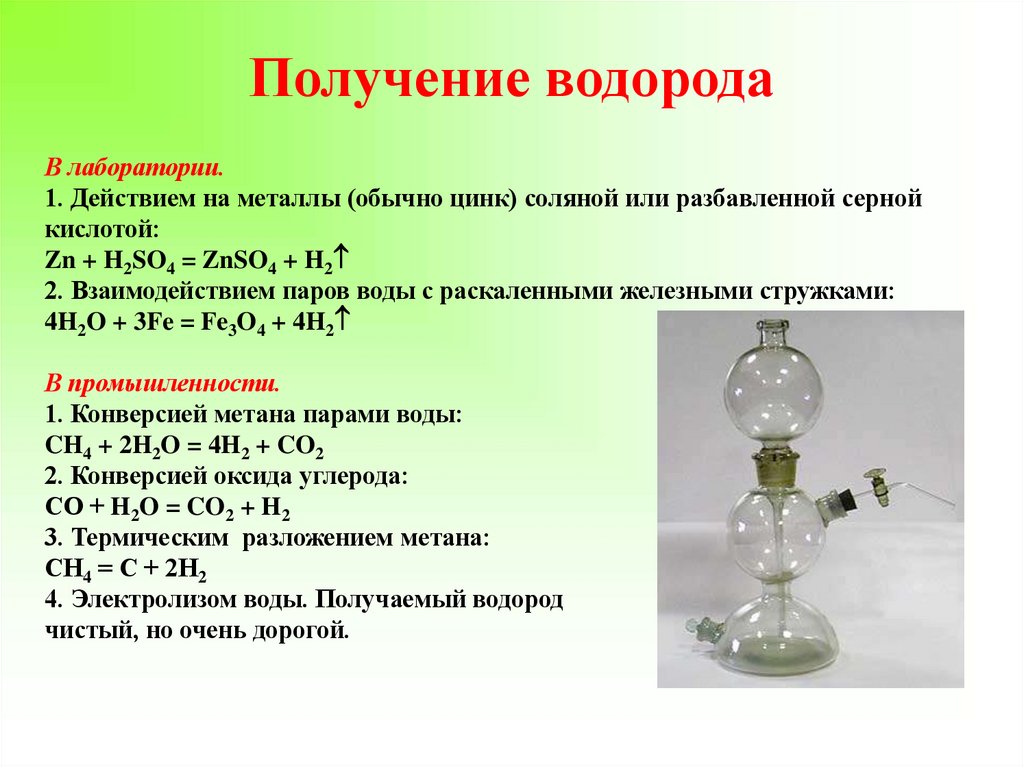 1. Действием на металлы (обычно цинк) соляной или разбавленной серной