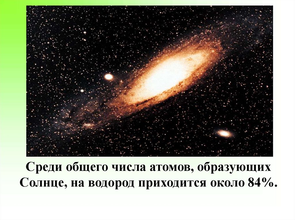 Среди общего числа атомов, образующихСолнце, на водород приходится около 84%.