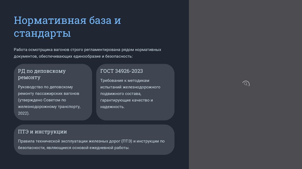 Работа осмотрщика вагонов строго регламентирована рядом нормативных