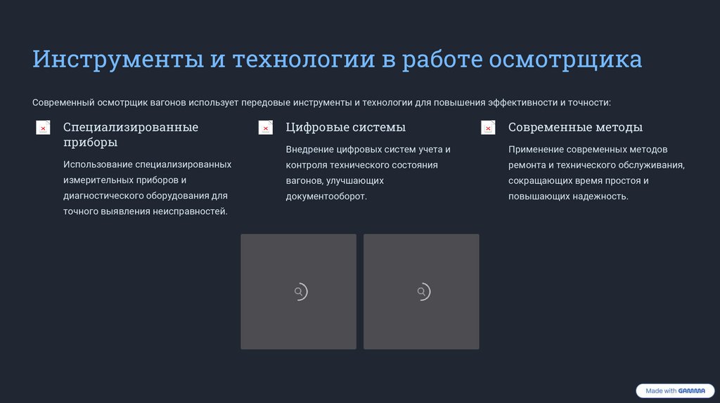 Инструменты и технологии в работе осмотрщикаСовременный осмотрщик вагонов использует передовые инструменты и технологии для повышения эффективности и точности: