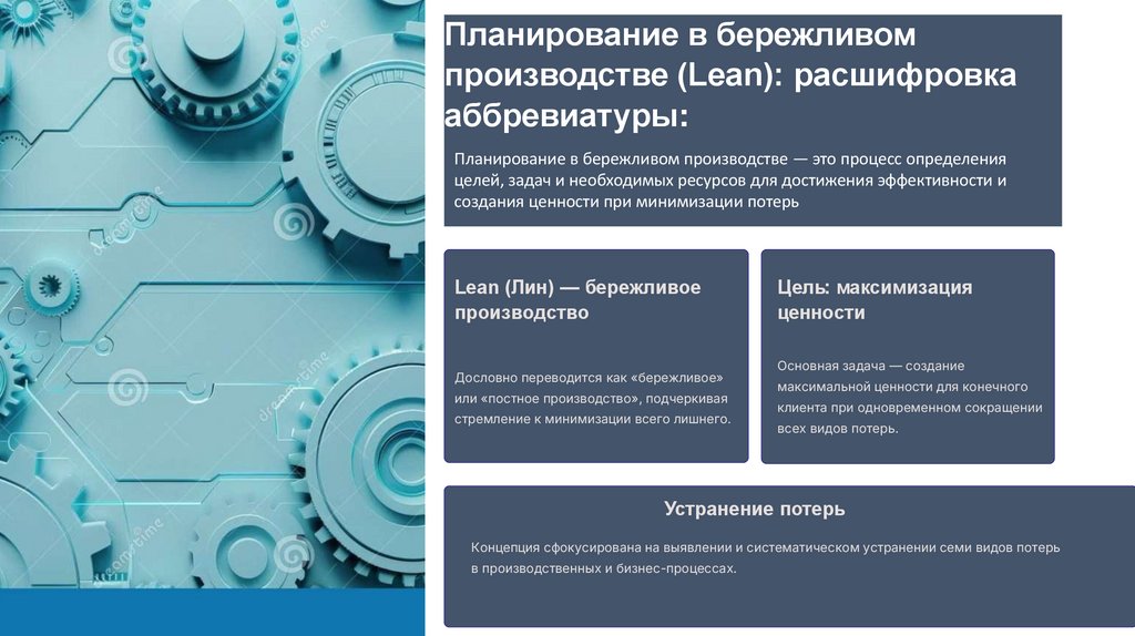 Концепция сфокусирована на выявлении и систематическом устранении семи видов потерь