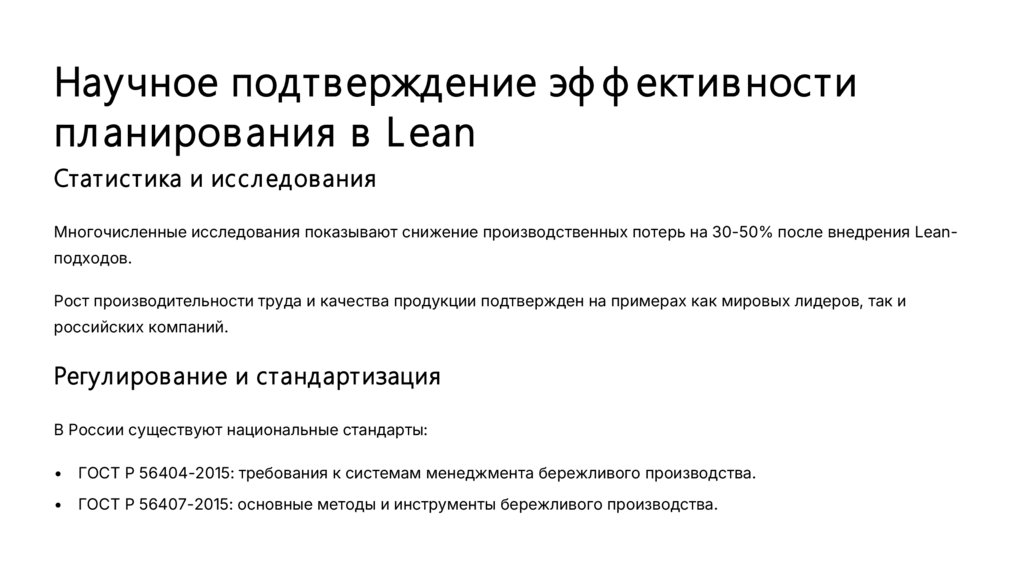 Многочисленные исследования показывают снижение производственных потерь на 30-50% после внедрения Leanподходов.