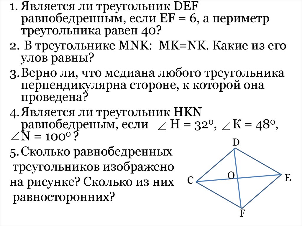 1. Является ли треугольник DEFравнобедренным, если EF = 6, а периметр