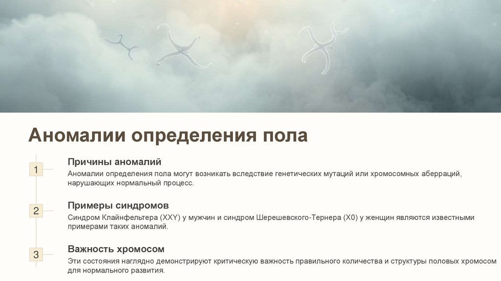 Аномалии определения пола могут возникать вследствие генетических мутаций или хромосомных аберраций,