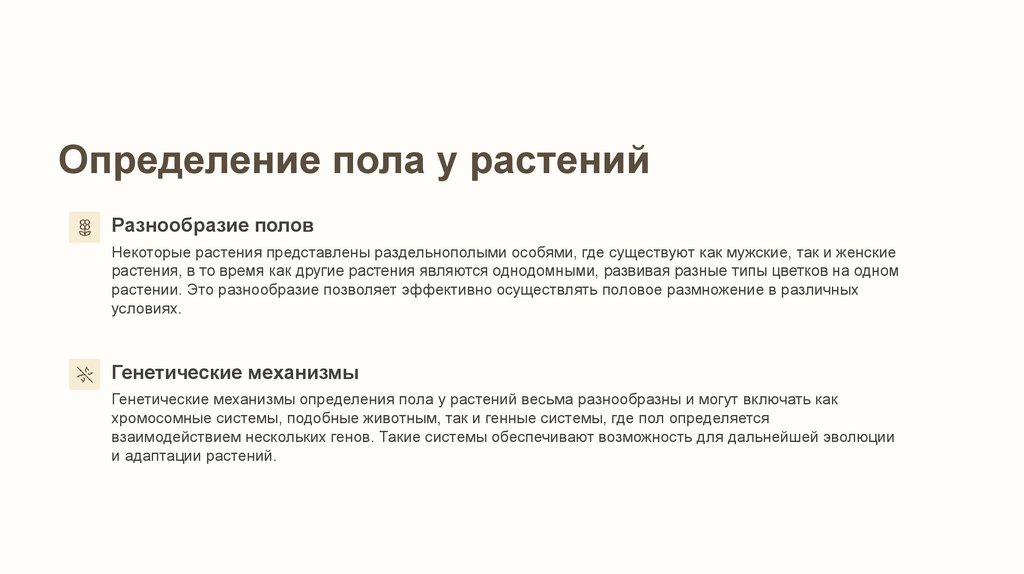Генетические механизмы определения пола у растений весьма разнообразны и могут включать как