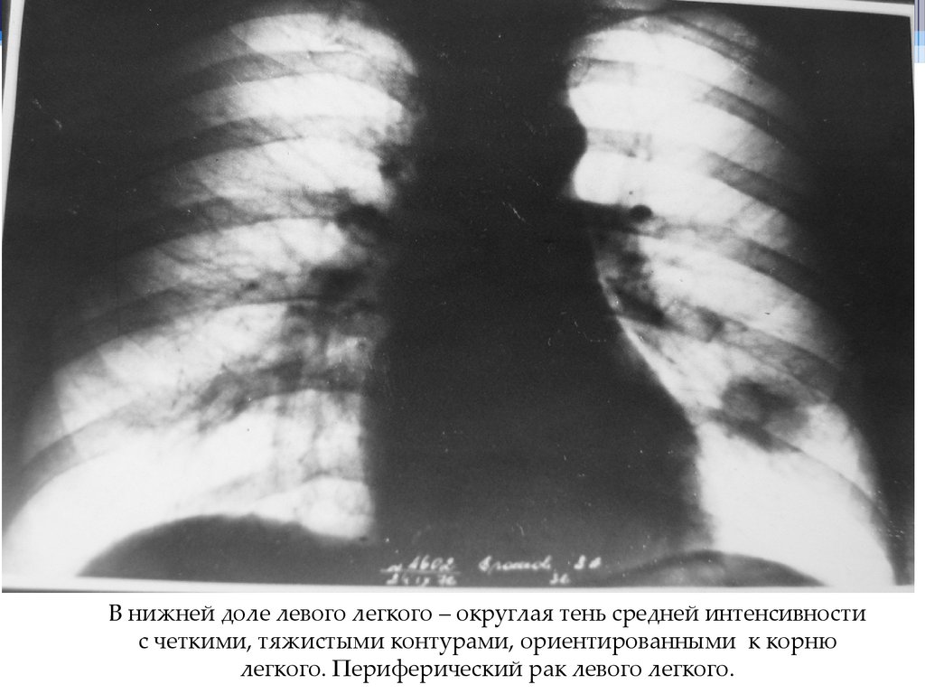 3) Верхушечный рак (опухоль Панкоста)Затемнение на верхушке, однородной структуры,