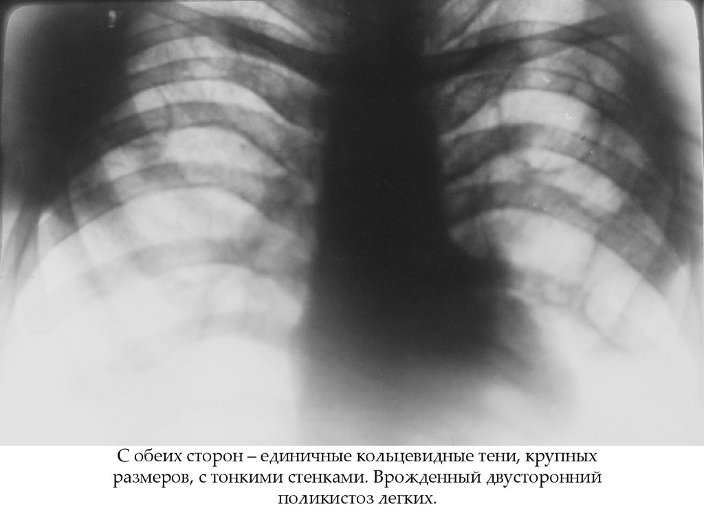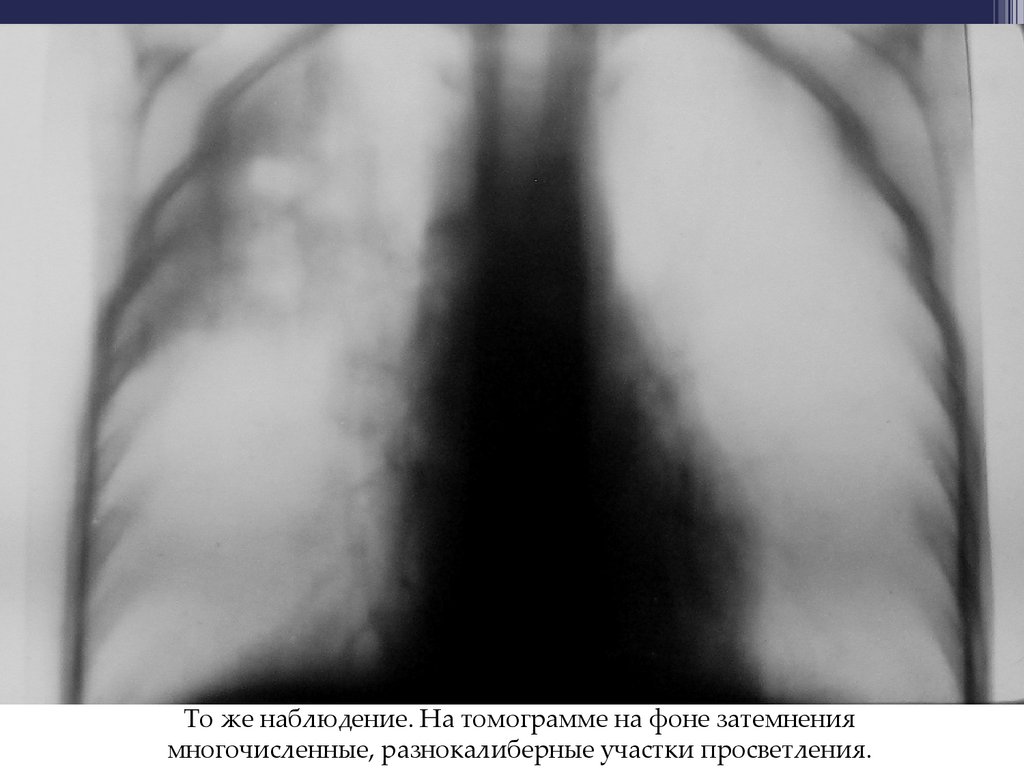 • Сочетание синдрома просветления собеднением легочного рисунка и