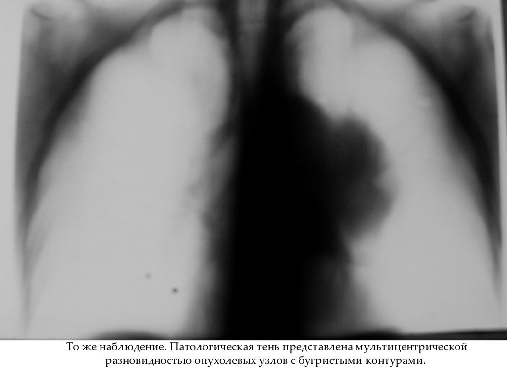 Очаговый туберкулез верхней доли левого легкого. Очаговые тени средней ивысокой интенсивности на протяжении верхушечно-заднего сегмента в различных