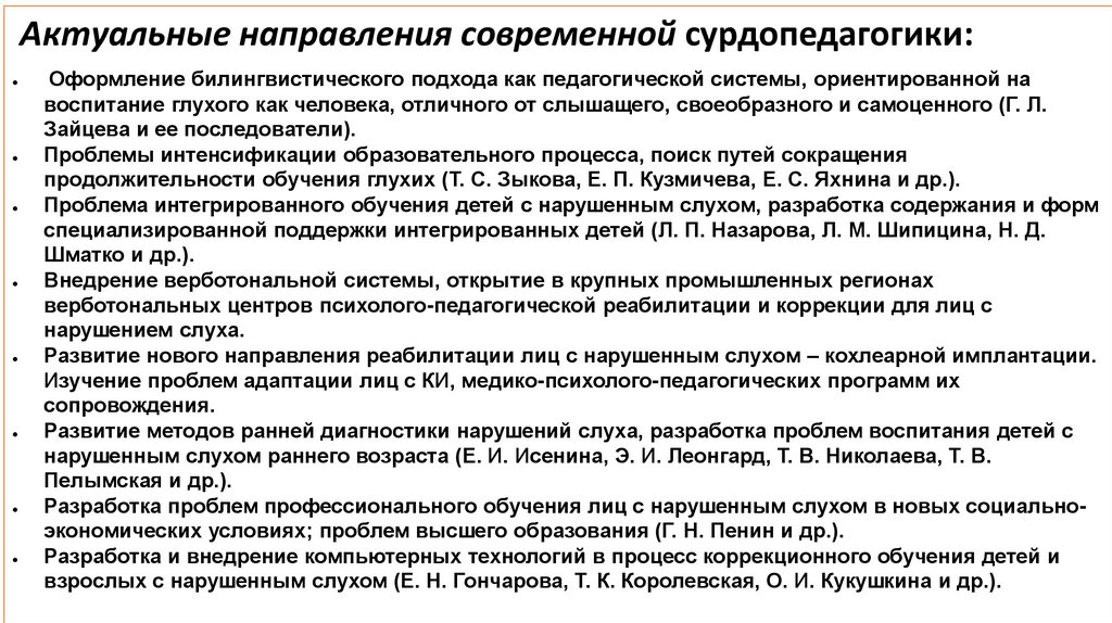 взрослых с нарушенным слухом (Е. Н. Гончарова, Т. К. Королевская, О. И. Кукушкина и др.).