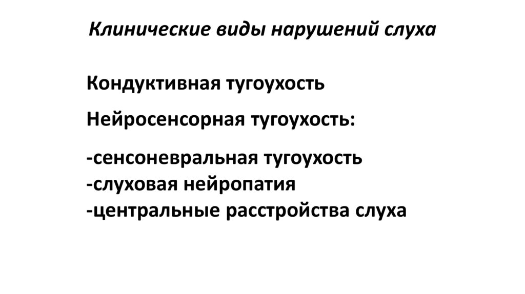 Клинические виды нарушений слухаКондуктивная тугоухость