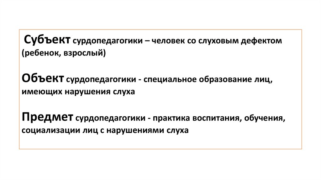 Субъект сурдопедагогики – человек со слуховым дефектом(ребенок, взрослый)