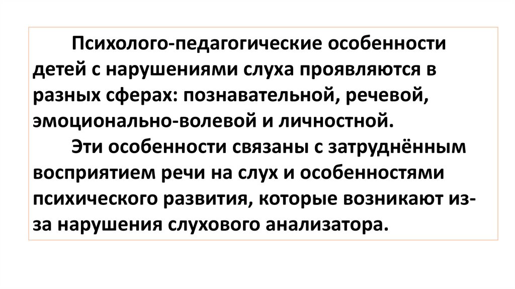 Психолого-педагогические особенностидетей с нарушениями слуха проявляются в