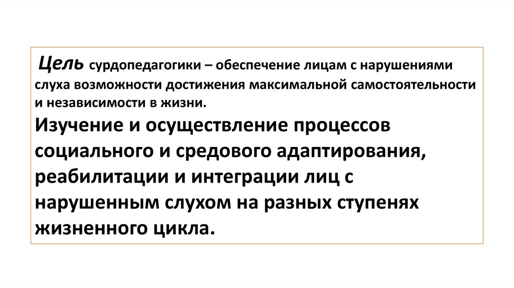 Цель сурдопедагогики – обеспечение лицам с нарушениямислуха возможности достижения максимальной самостоятельности