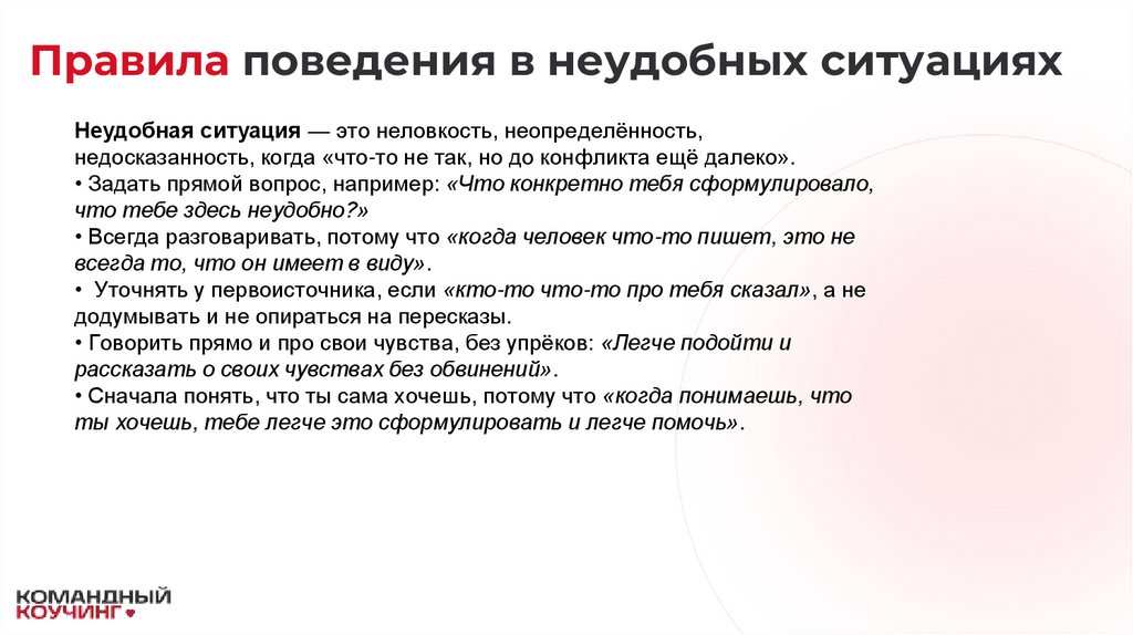 Правила поведения в неудобных ситуацияхНеудобная ситуация — это неловкость, неопределённость,
