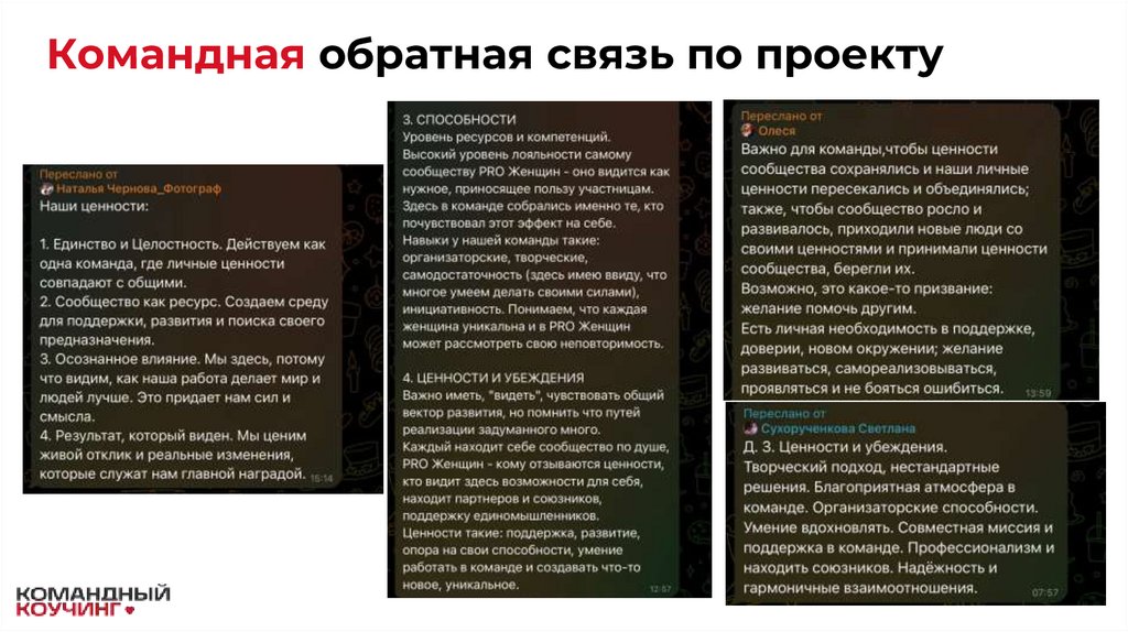 Мы работаем как команда, которая усиливает друг друга, поддерживает, принимает, действует