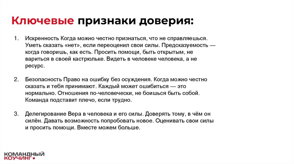Ключевые признаки доверия:1.