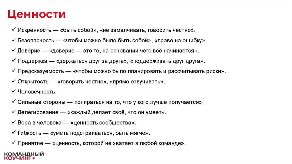 •Быть сильной, честной и сплочённой командой с делегированием по суперсилам.