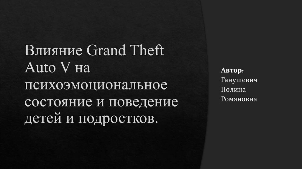 Влияние Grand Theft Auto V на психоэмоциональное состояние и поведение детей и подростков.