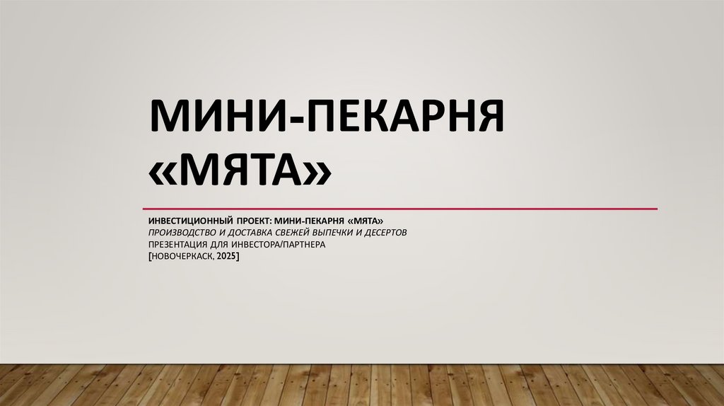 ИНВЕСТИЦИОННЫЙ ПРОЕКТ: МИНИ-ПЕКАРНЯ «МЯТА»