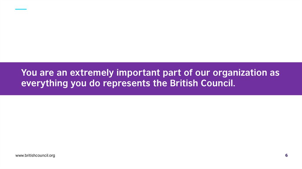 You are an extremely important part of our organization aseverything you do represents the British Council.