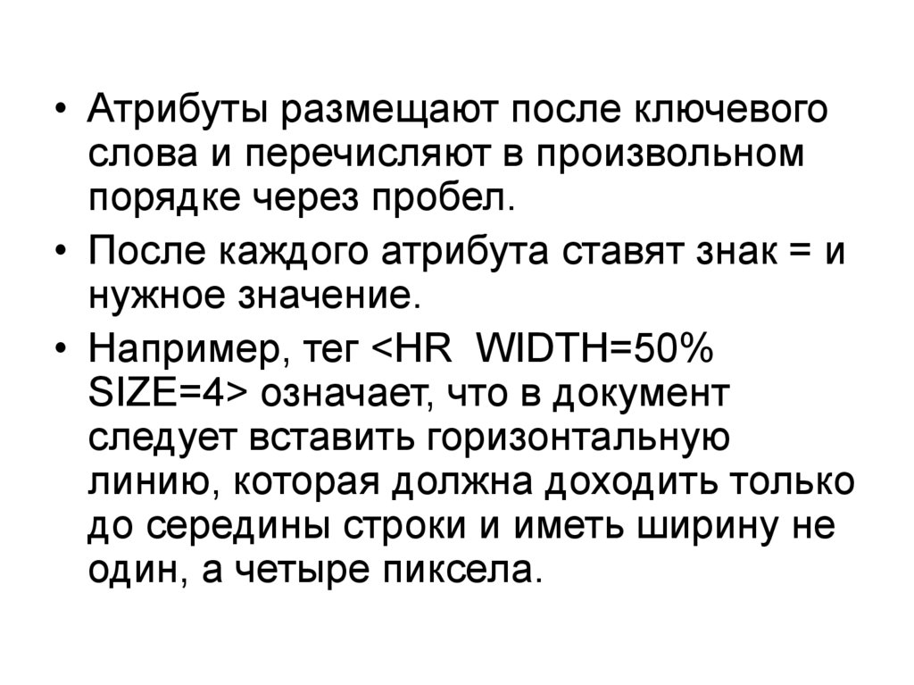 • Атрибуты размещают после ключевогослова и перечисляют в произвольном