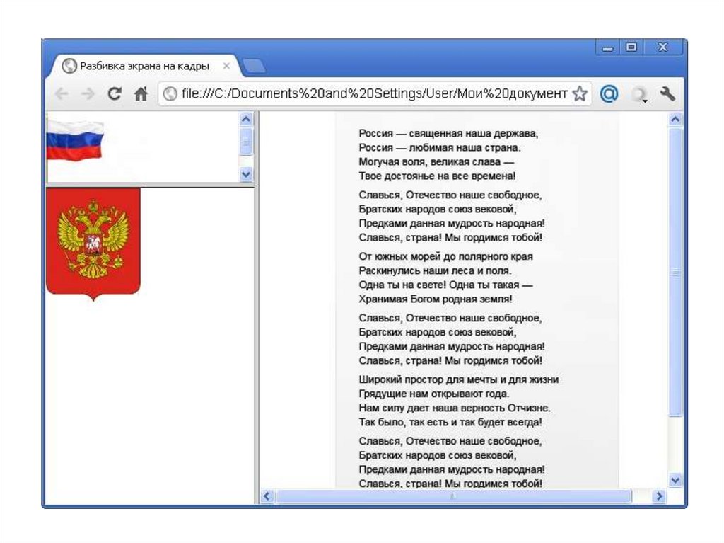 <TITLE> Разбивка экрана на кадры </TITLE>
