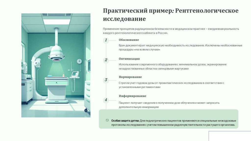 Особая защита детей: Для педиатрических пациентов применяются специальные низкодозовые