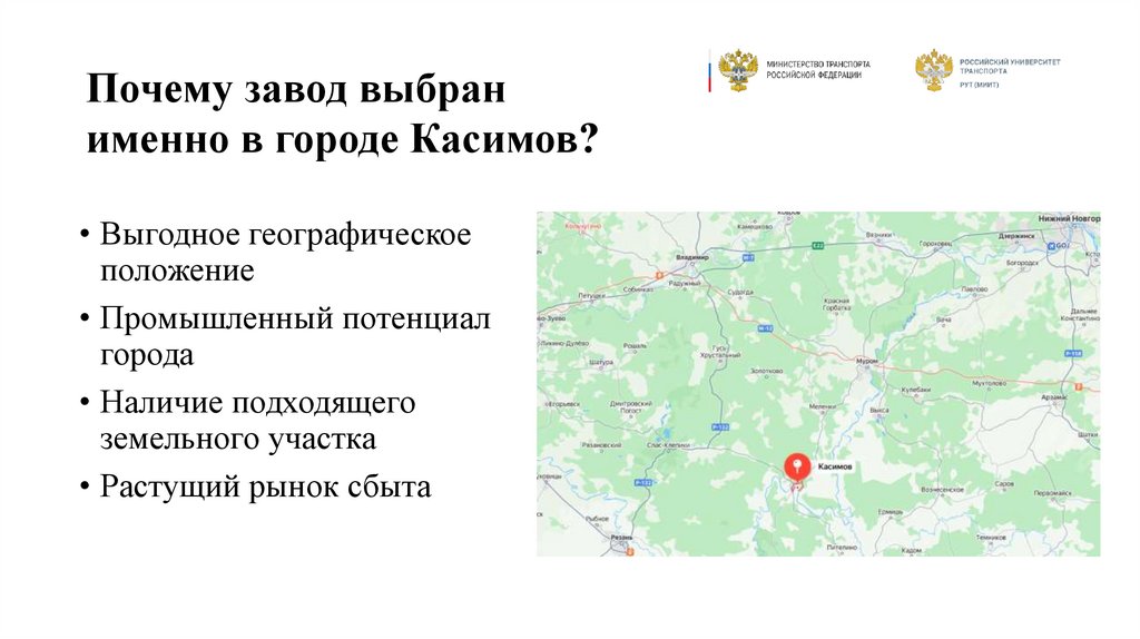 Почему завод выбранименно в городе Касимов?