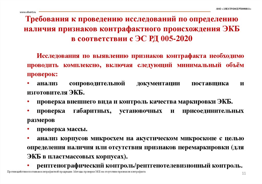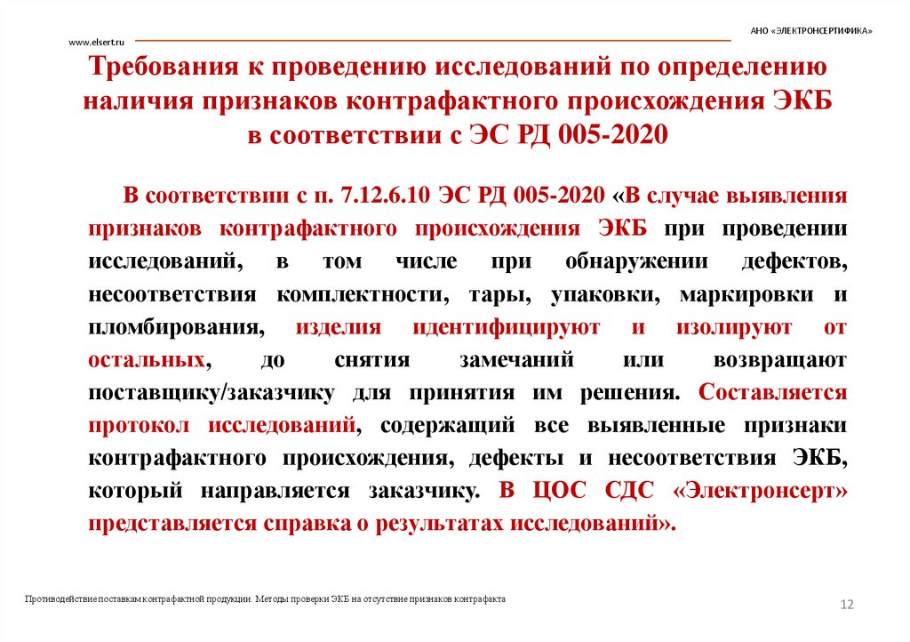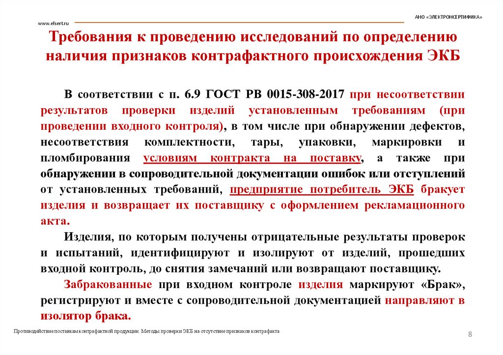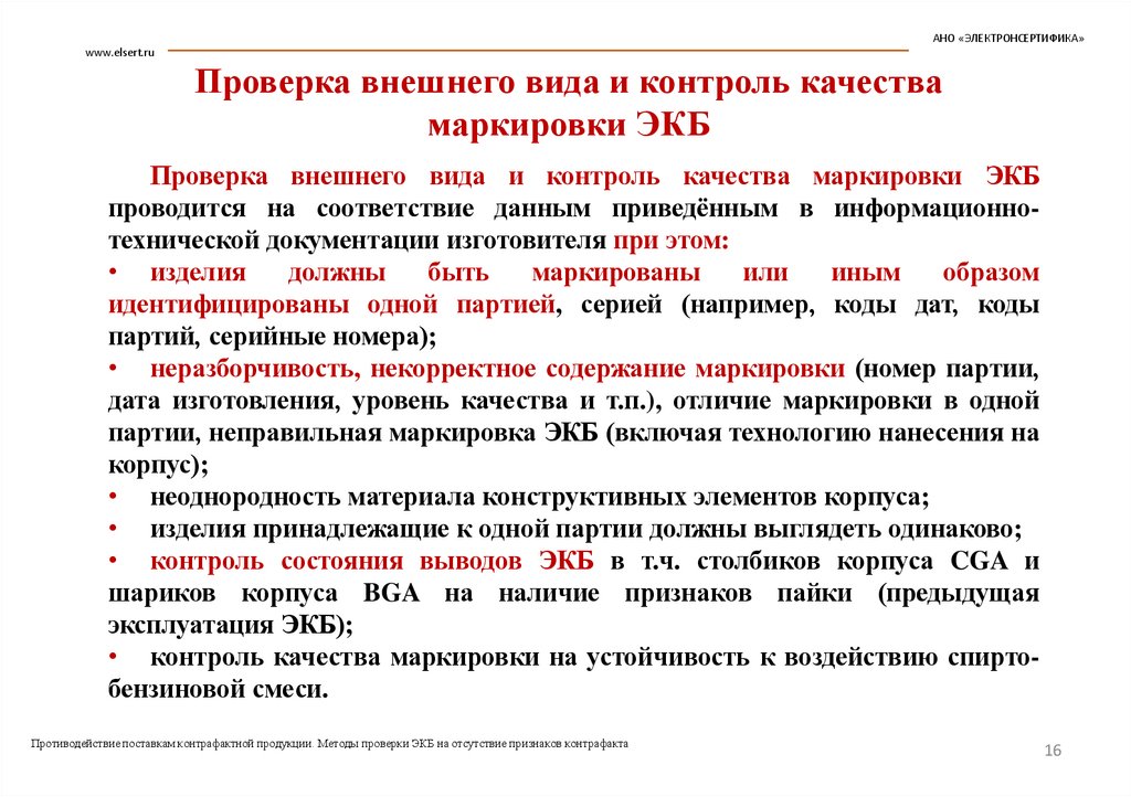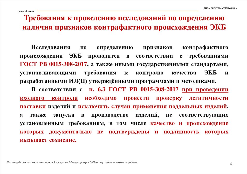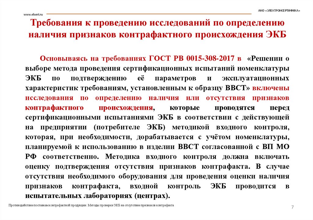 происхождения ЭКБ проводятся в соответствии с требованиями