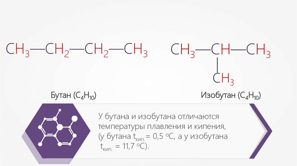 (у бутана tкип.= 0,5 oС, а у изобутана
