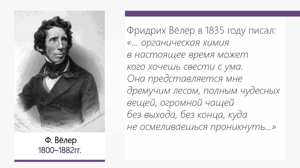 Фридрих Вёлер в 1835 году писал:«... органическая химия
