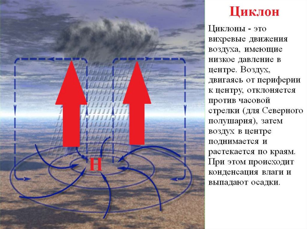 процесса вытеснения вверх тёплого воздуха в циклоне за