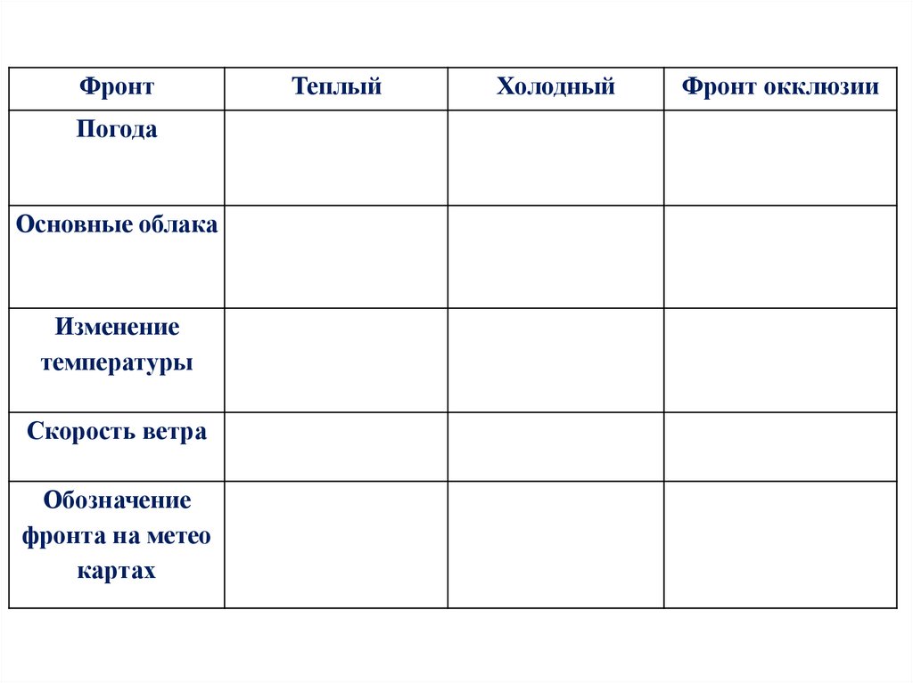 1. Атмосферные фронты. Циклоны и антициклоны. Прогноз погоды