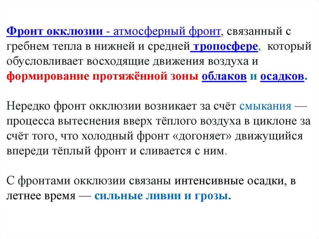 Фронт окклюзии - атмосферный фронт, связанный сгребнем тепла в нижней и средней тропосфере, который