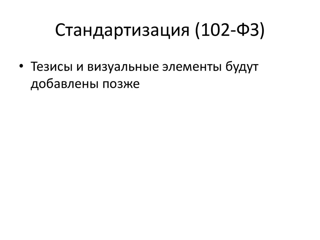 Стандартизация (102-ФЗ)• Тезисы и визуальные элементы будут
