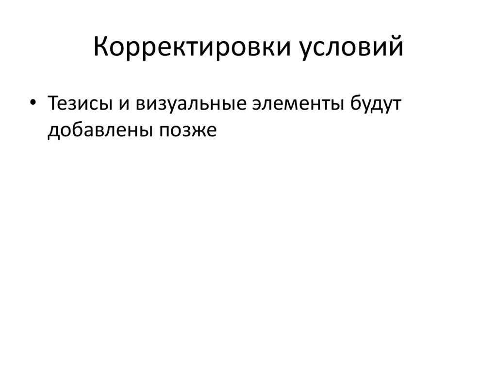 Корректировки условий• Тезисы и визуальные элементы будут