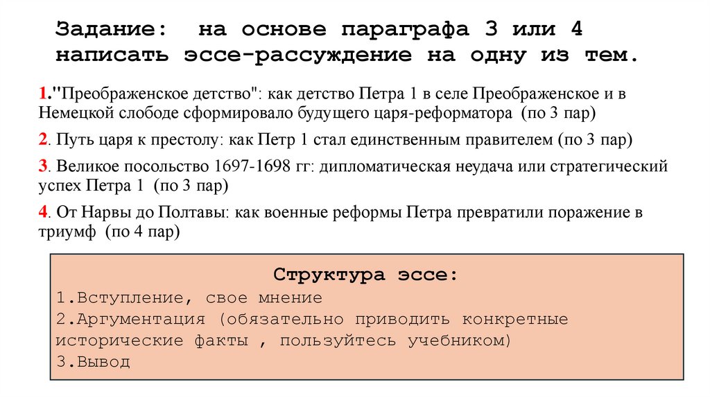 1. Задание: на основе параграфа 3 или 4 написать эссе-рассуждение на одну из тем.