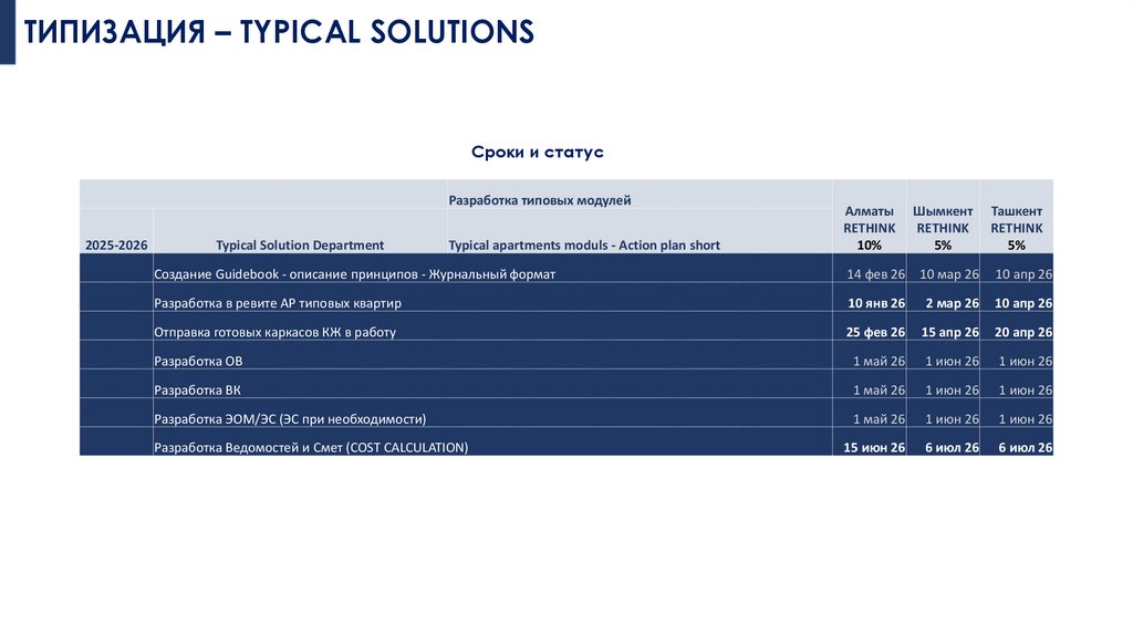 ТИПИЗАЦИЯ – TYPICAL SOLUTIONSСроки и статус