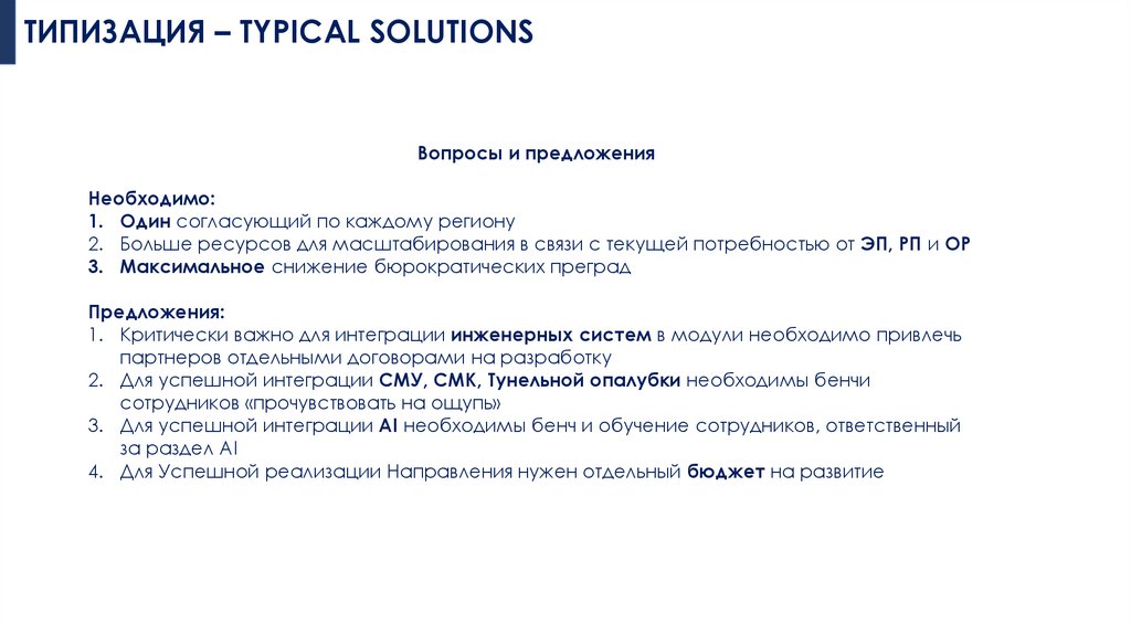 ТИПИЗАЦИЯ – TYPICAL SOLUTIONSВопросы и предложения