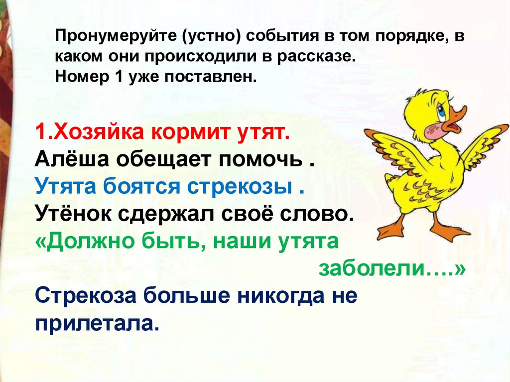 Пронумеруйте (устно) события в том порядке, вкаком они происходили в рассказе.