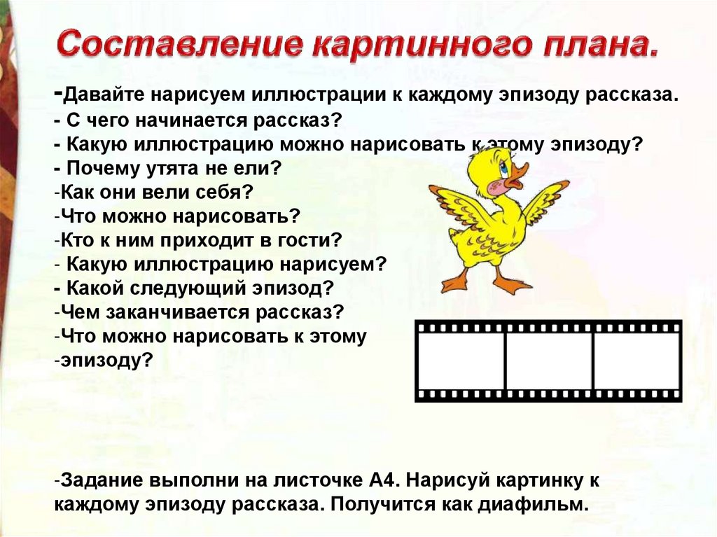 -Давайте нарисуем иллюстрации к каждому эпизоду рассказа.- С чего начинается рассказ?