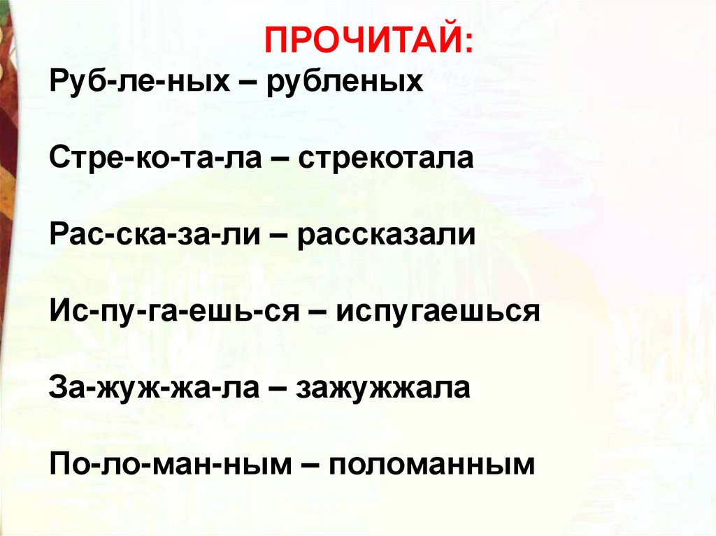 ПРОЧИТАЙ:Руб-ле-ных – рубленых
