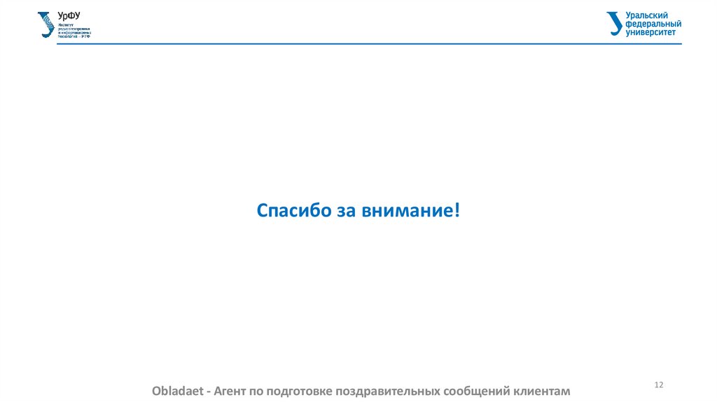 Спасибо за внимание!Obladaet - Агент по подготовке поздравительных сообщений клиентам