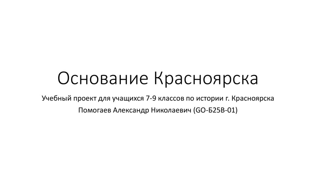 Учебный проект для учащихся 7-9 классов по истории г. КрасноярскаПомогаев Александр Николаевич (GO-Б25В-01)