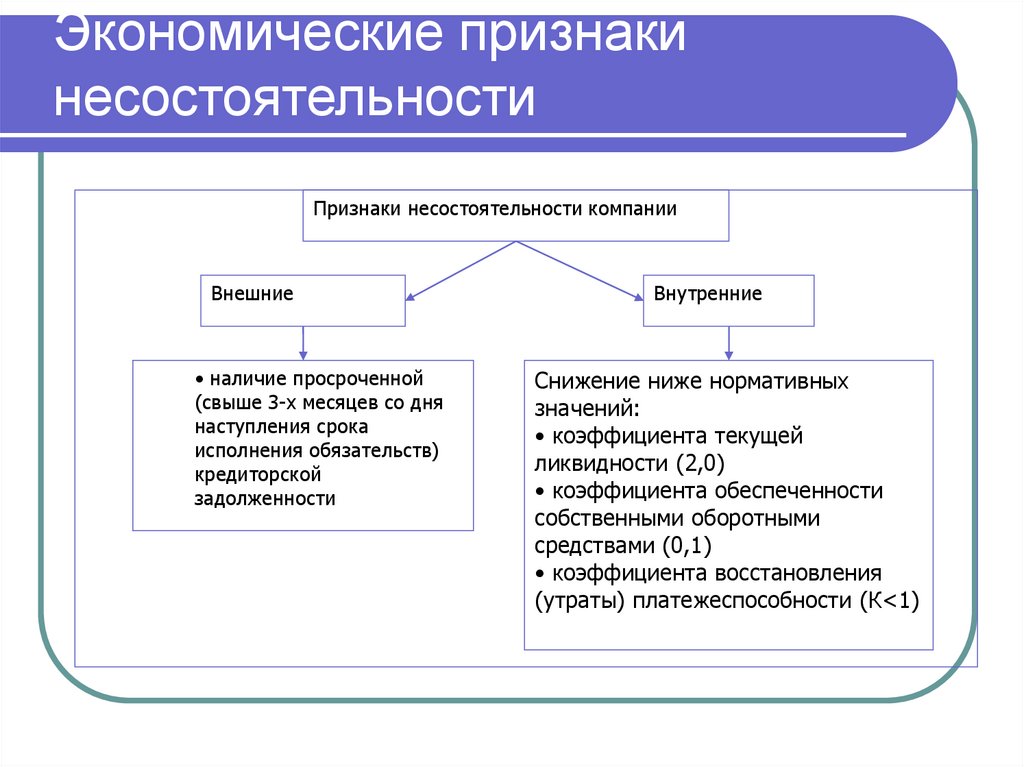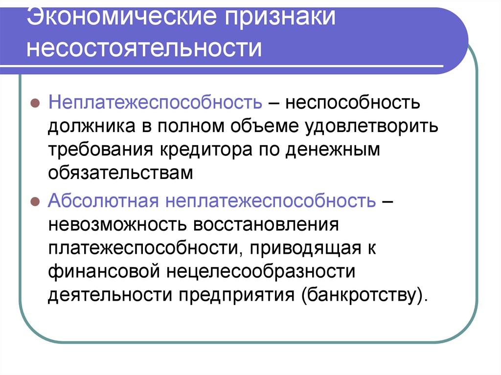 Экономические признакинесостоятельности